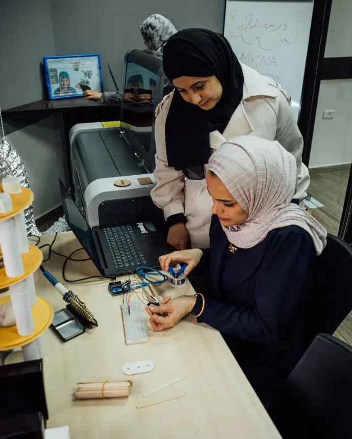 ورشة مكنة للتعليم التطبيقي مساحة تعليمية إبداعية في رام الله - فلسطين، متخصصة في تطوير التعليم التطبيقي ومشاريع STEM (العلوم، التكنولوجيا، الهندسة، والرياضيات).